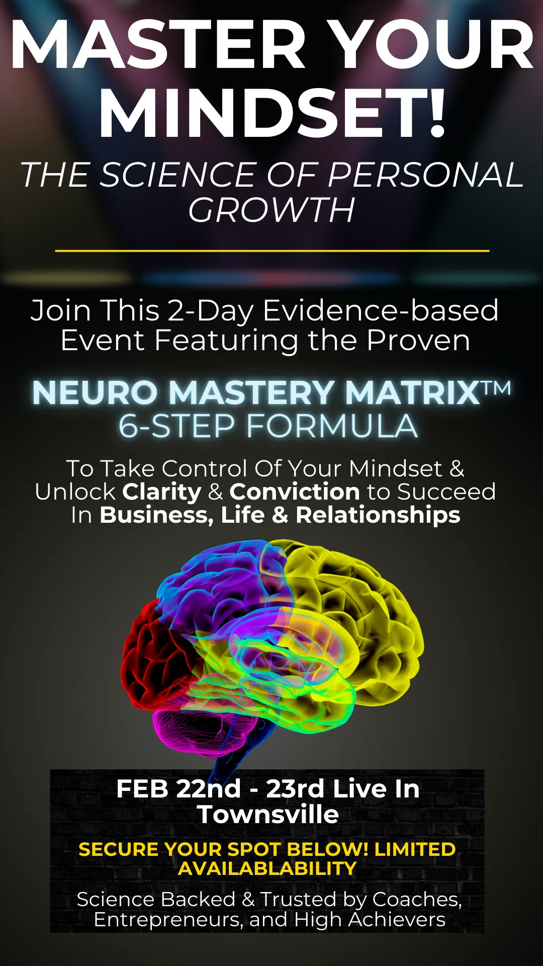 The Neuro Mastery Matrix is not about surface-level strategies like vision boards or goal-setting. This event dives into the science of transformation, teaching you evidence-backed methods to reprogram your mind, align your subconscious patterns, and achieve real breakthroughs.